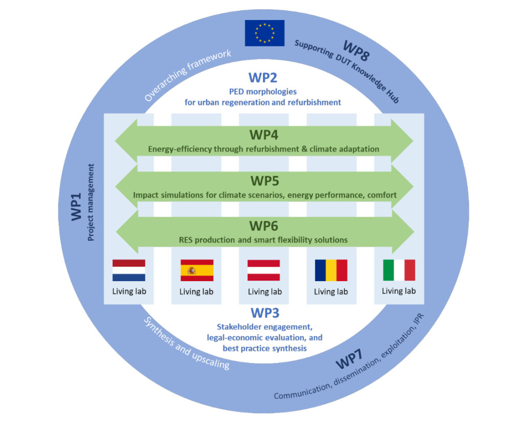 The project uses a systemic, research-oriented approach grounded in urban morphology, combining technical innovation with inclusive co-creation processes. Educational institutions, due to their sizeable public assets, knowledge capacity, and stakeholder connectivity, are positioned as the main orchestrators of PED transitions.